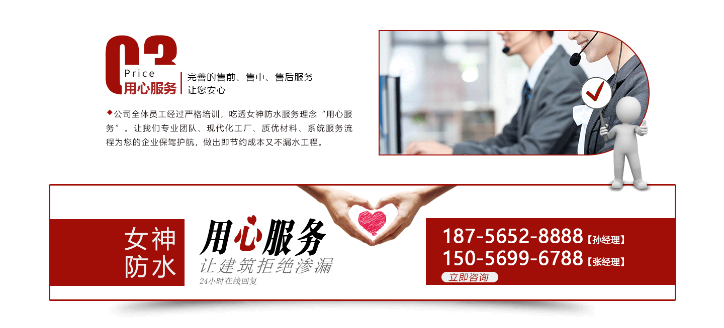 安徽女神建材科技集團有限公司是集防水材料研發、生產、銷售、施工為一體的綜合性防水材料集團公司。我公司旗下有多條大型一次成型生產線:SBS改性瀝青防水卷材,DTM聚酯復合高分子防水卷材,非瀝青基高分子防水卷材,PVC,TPO高分子防水卷材等生產線。我公司秉承“創新發展、實惠用戶”為宗旨,確保生產材料基礎上推出“共享生產廠家”,為開發商、建筑商節約成本為理念,新理念受到用戶企業集采時一致好評和認可。在互聯網時代,我公司將以互聯網“共享”為發展理念,為開發商、建筑商、防水企業提供的產品,真正讓用戶企業達到巨大...